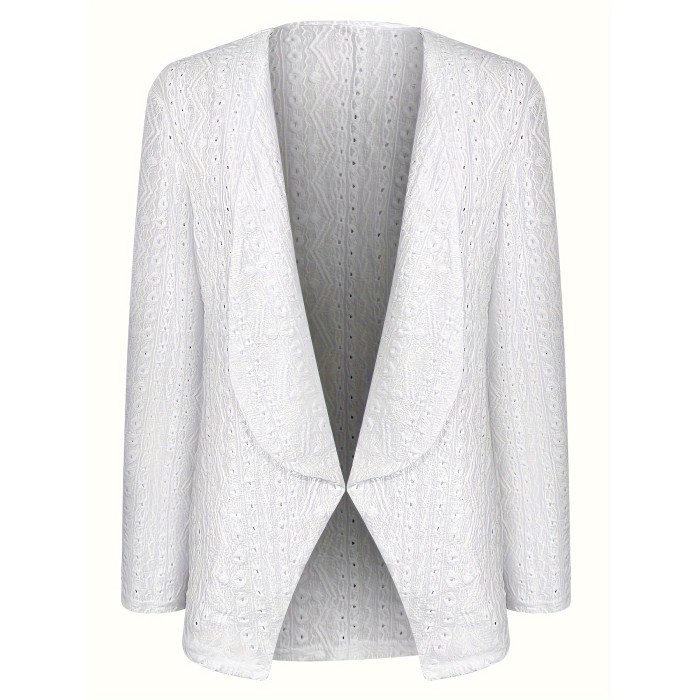 Solid Eyelet Open Front Blazer, Casual Lapel Long Sleeve Outwear For Spring & Fall, Women's Clothing
